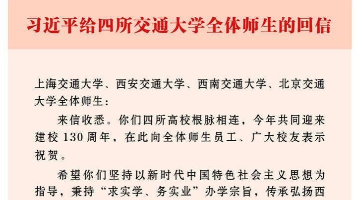 习近平给四所交通大学全体师生回信强调 传承弘扬西迁精神聚焦国家重大战略需求 为建设教育强国科技强国人才强国作出新贡献