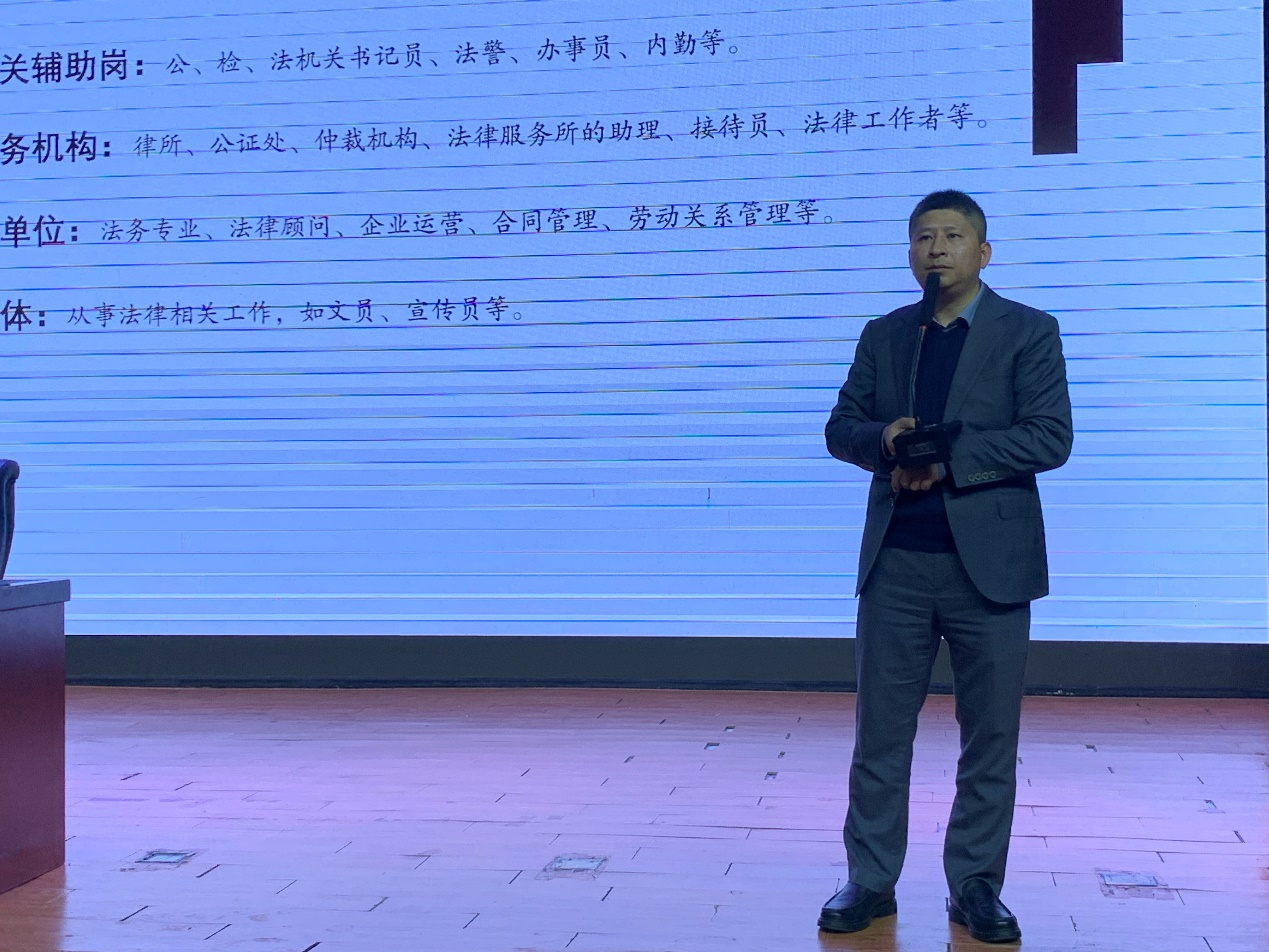 11月25日,文法学院在四教学术报告厅召开“校友讲坛”活动,邀请2007届法律事务专业优秀校友王景作成长成才经验分享报告会。王景现为北京德恒(南昌)律师事务所高级合伙人、党支部书记。文法学院党总支副书记曹国平、辅导员以及文法学院2024级全体新生参加讲座。法律教研室主任陈晋博士主持活动。
